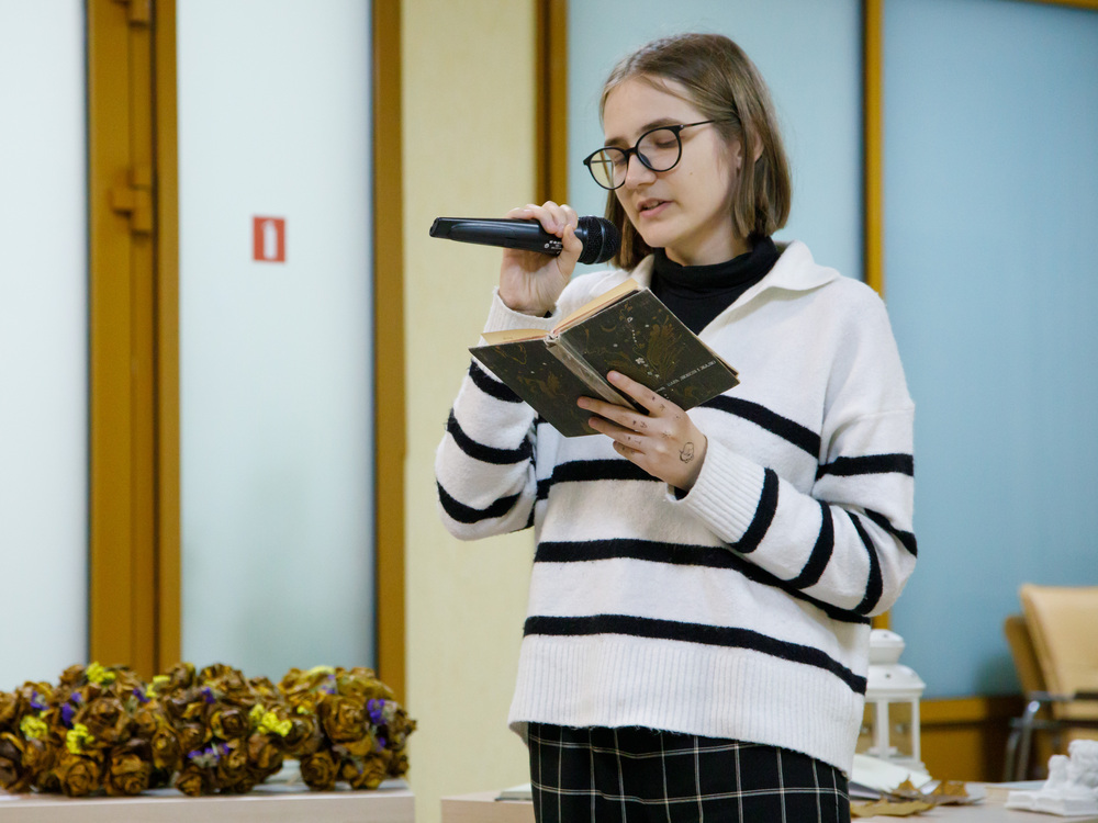 Мы ведаем Яўгенію Янішчыц у першую чаргу як аўтара любоўнай лірыкі, але гэты вечар раскрыў і іншыя тэмы яе творчасці. Вершы паэткі гучалі ў выкананні студэнтаў ВДМУ. Удзельнікі Клуба аматараў мастацкага слова «Иерихон”, які працуе пры бібліятэцы ўніверсітэта, з задавальненнем прадставілі слухачам рознабаковую паэзію Яўгеніі Янішчыц.
