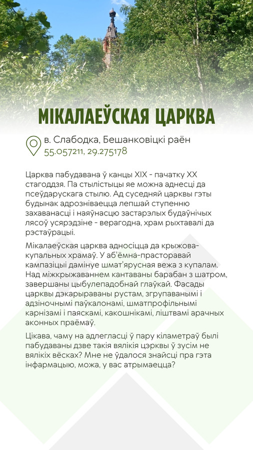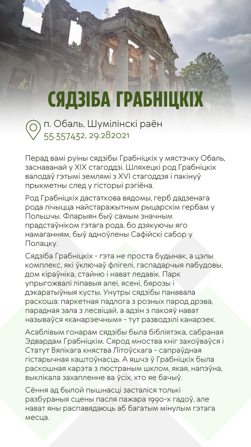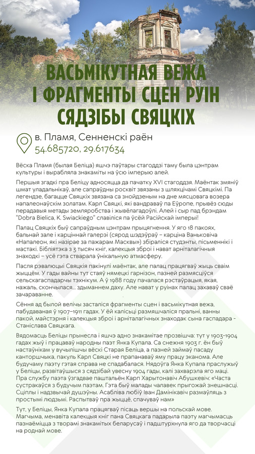 Помнікі архітэктуры - велічныя і сусветна вядомыя, альбо маленькія, каштоўныя толькі для жыхароў населенага пункта. Гэта не мае значэння. Галоўнае – захоўваць і ўзнаўляць гэтыя сведкі стагоддзяў, а таксама памятаць пра тыя падзеі, якія адбываліся ў пэўных мясцінах. Тут і старажытныя храмы, і таямнічыя палацы, і цудам уцалелыя рэшткі гаспадарчага комплексу і руіны першародных сядзіб і маёнткаў. Да кожнай работы прыведзены гістарычныя звесткі, цікавыя факты і паданні.