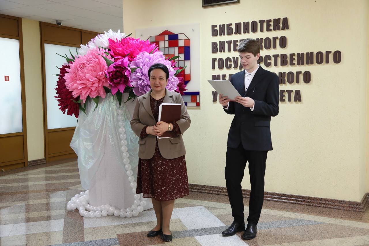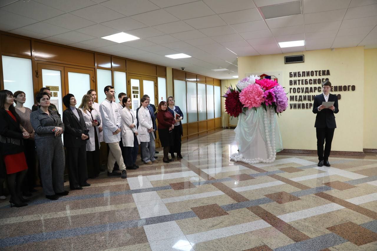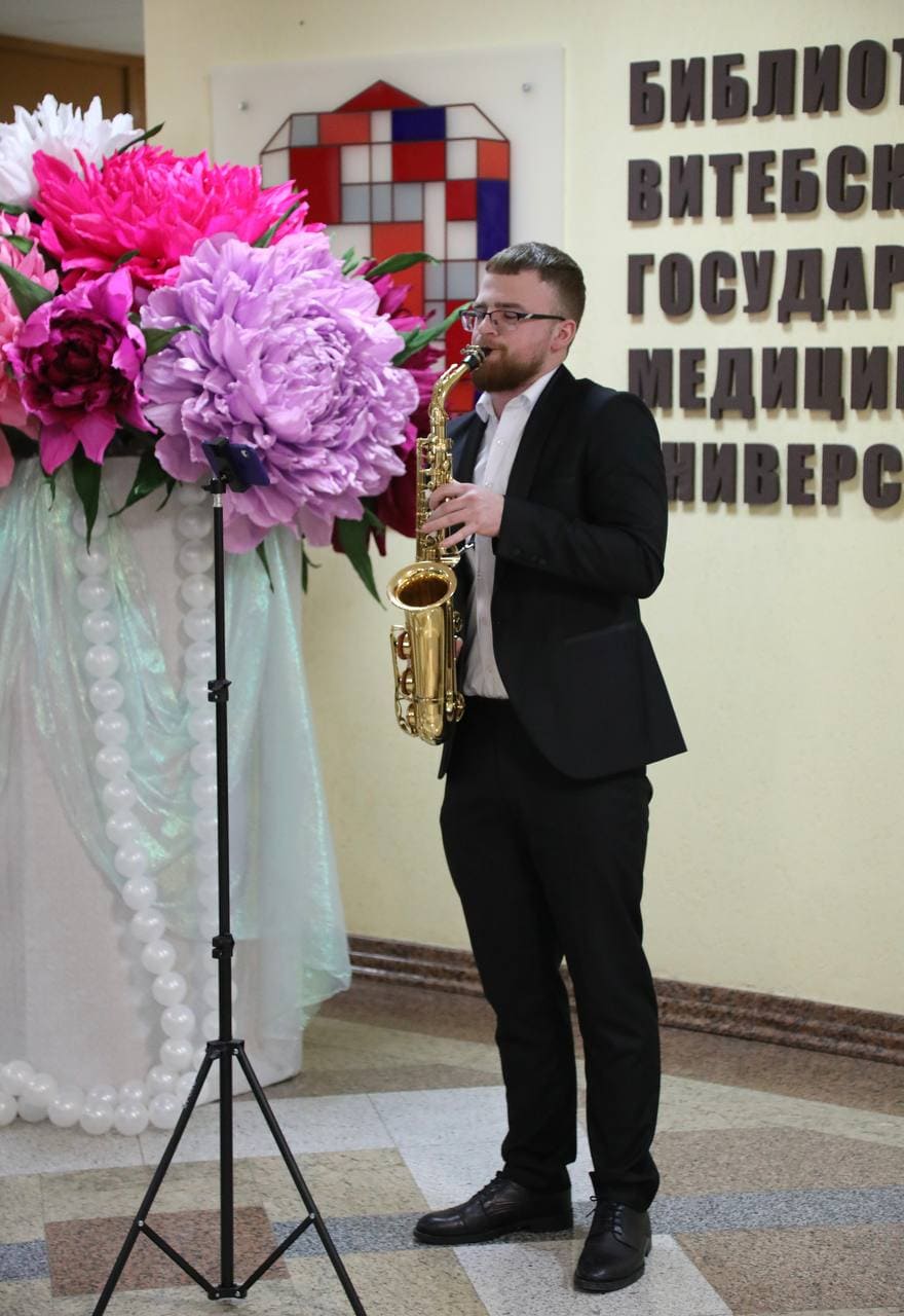 В исполнении Данилы Цыкунова, студента 5 курса лечебного факультета, пространство библиотеки наполнилось мягкими и чувственными звуками саксофона, а в качестве подарка для всех прозвучала лирическая музыкальная композиция.