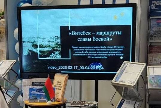 В рамках информационно-презентационной площадки проектов учреждений высшего образования были продемонстрированы медиапрезентации ВГМУ: инновационный образовательный проект «Молодежь ВГМУ за семейные ценности», «Восстановление храмов Витебщины», «Улицы героев», «Патриотическое воспитание в рамках деятельности военно-патриотического клуба «Служу Отечеству», «Формула ВГМУ» (совместный проект с Витебским телевидением).