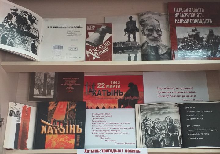 В читальном зале библиотеки (4 этаж, 403 каб.) оформлена тематическая выставка «Хатынь: трагедыя і памяць», где представлены материалы из фондовых коллекций.