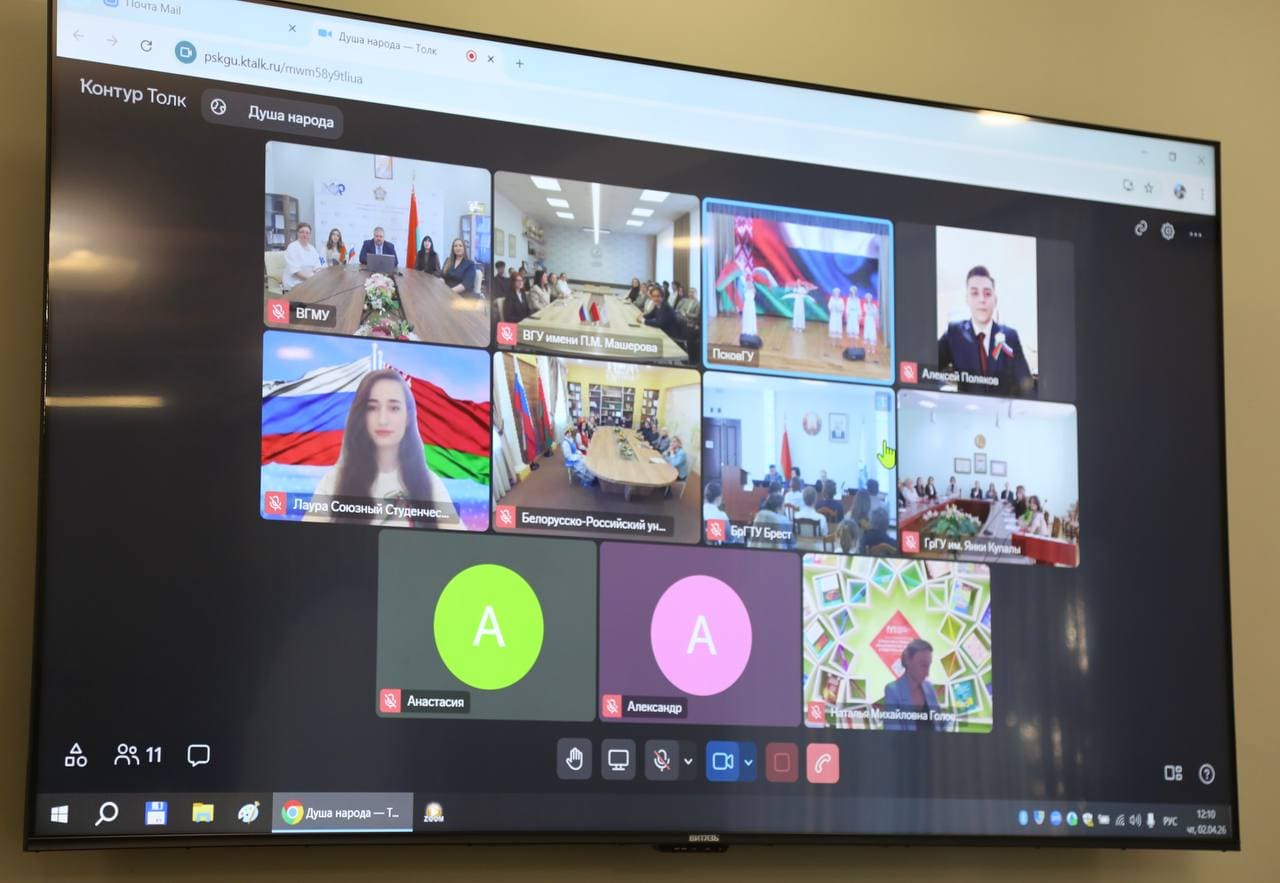 Одним из ключевых событий стал онлайн-телемост, организованный Псковским государственным университетом. Он дал старт Международной литературной акции «Душа народа в произведениях поэтов и писателей», приуроченной к этой знаменательной дате. Участники из разных вузов представили произведения на родных языках, ярко подчеркнув богатство и мелодику белорусской и русской речи. Мария Дубовская, студентка 5 курса лечебного факультета и участница клуба художественного слова «Ліхтар», представила стихотворение Максима Богдановича «Слуцкія ткачыхі».