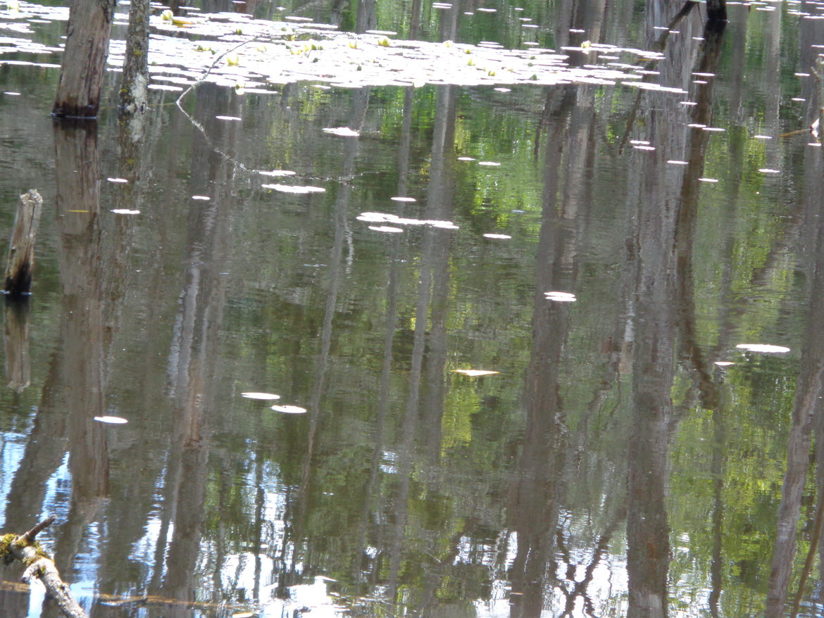 На выставке Ольга Петровна поделилась своими впечатлениями из отпусков, которые проводила рядом с озерами и реками. На фотографиях из водной глади рождаются кувшинки, в ней отражается лес, она становится полотном или сценой представления, разыгранного природой. Вода приоткрывает свои тайны, а объектив делает их более явными для зрителя.