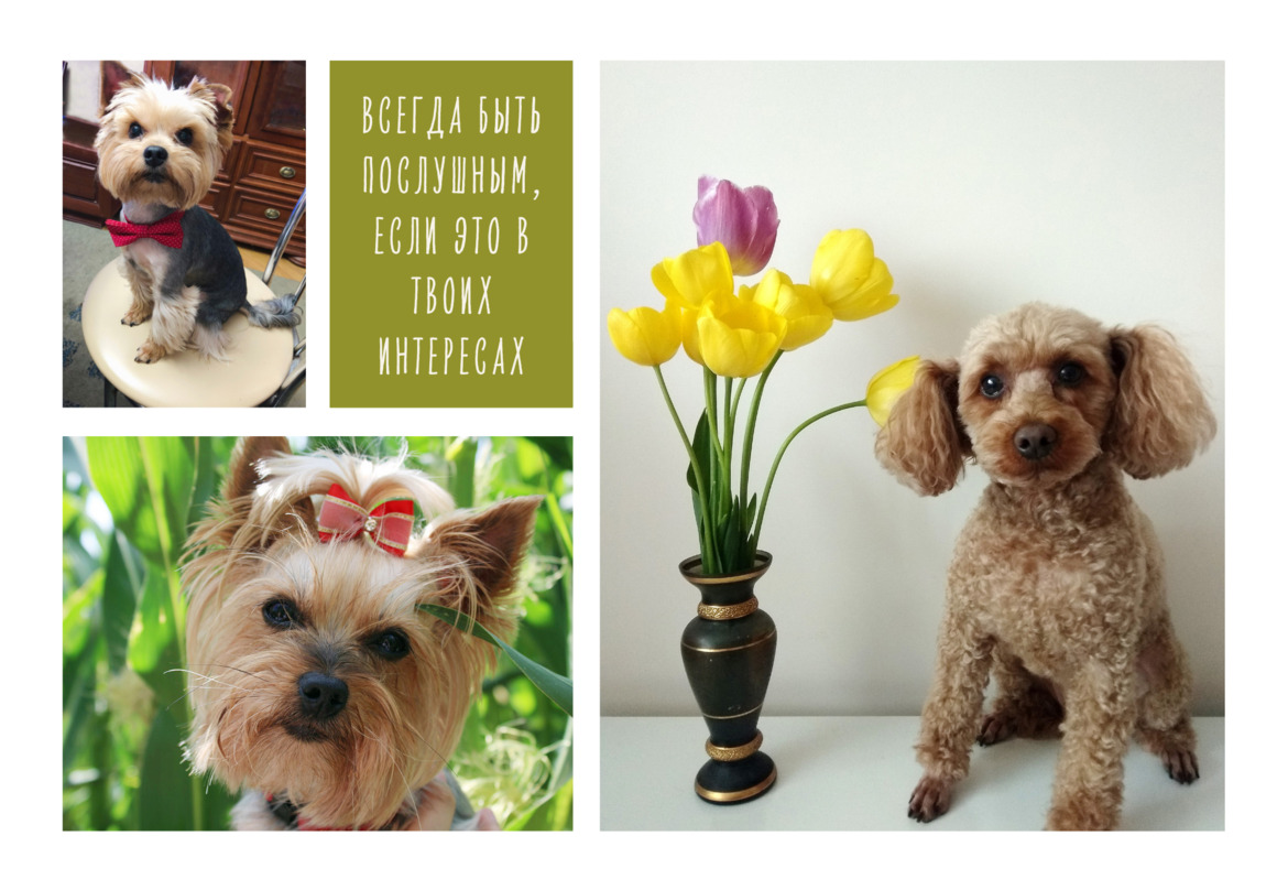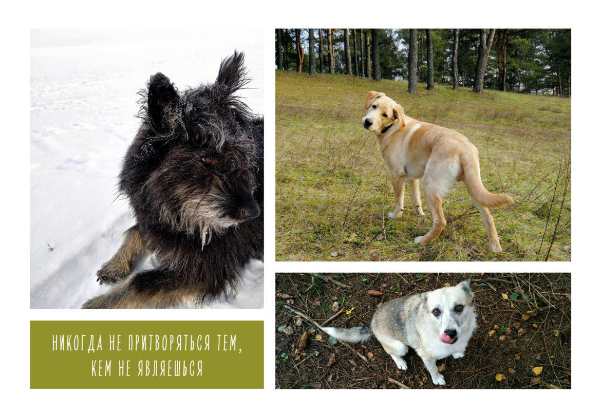 Собака – не просто компаньон для души, собака – это учитель! В книге описано 18 вещей, которым может научить нас наш четвероногий друг. Каким именно – вы узнаете, просмотрев выставку. Каждый коллаж мы составили согласно этим пунктам.