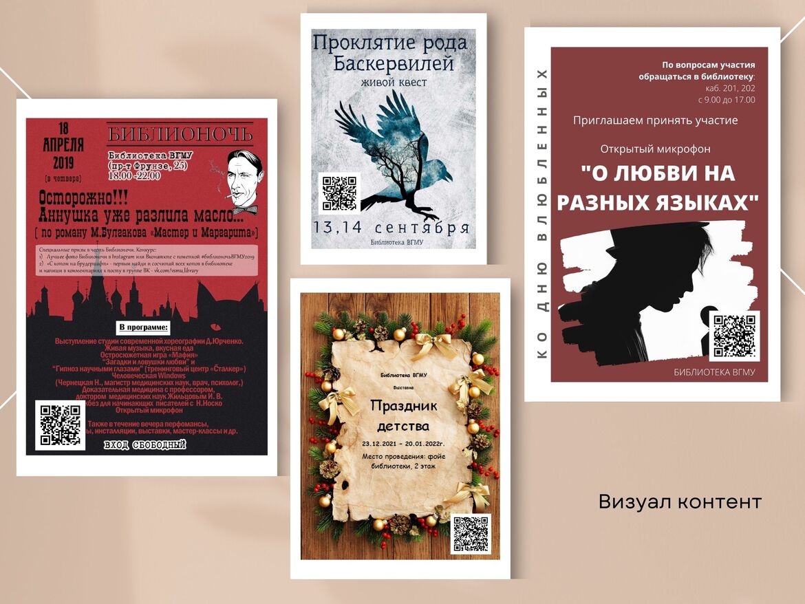 Стремление к удовлетворению не только учебных и научных потребностей пользователей, но и их культурных, досуговых интересов, делает работу нашего подразделения разносторонней, творческой и, надеемся, востребованной университетским сообществом.