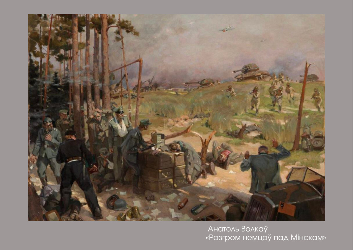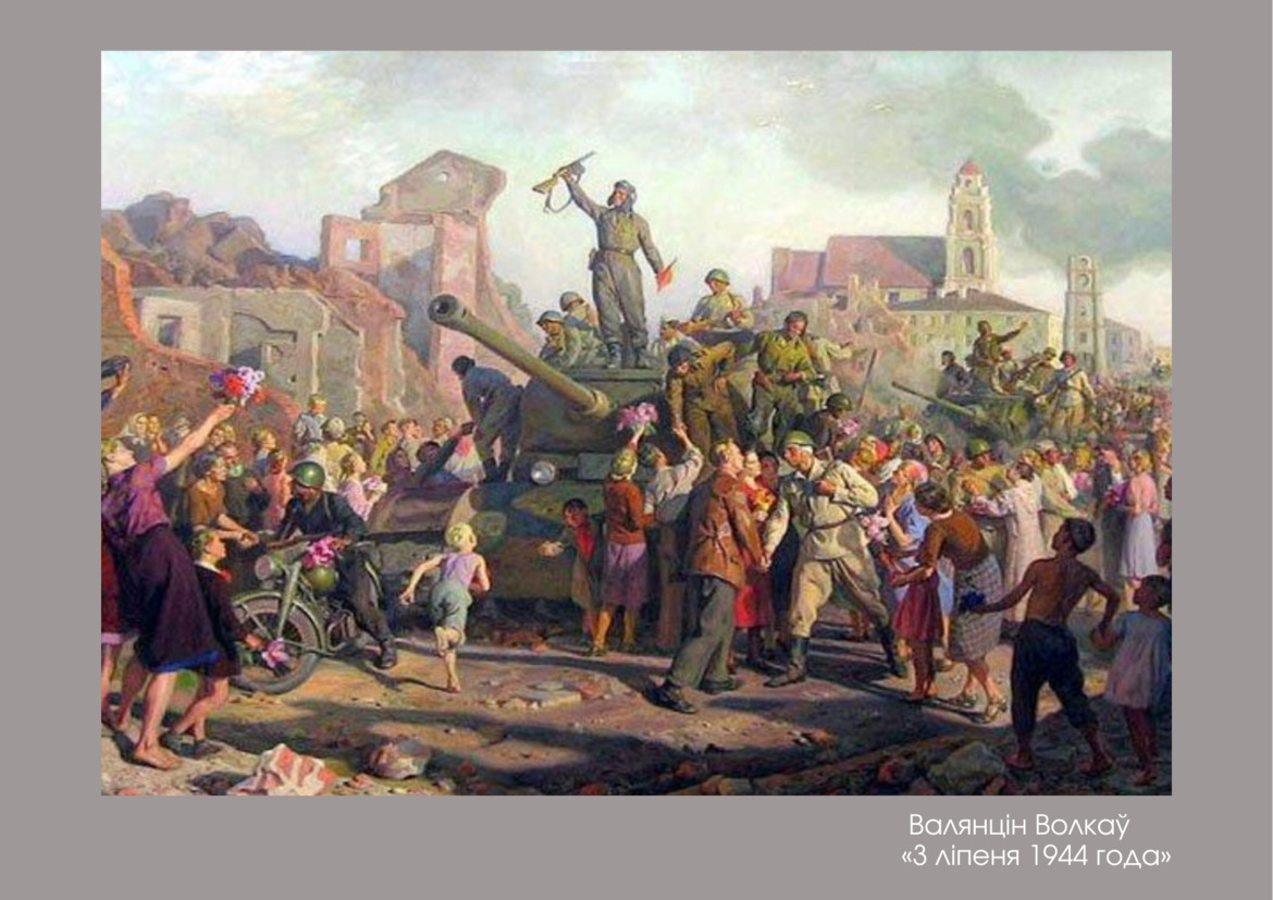 Гэта стала магчымым дзякуючы мужнасці, гераізму, рашучасці і самаахвяраванню сотняў тысяч воінаў, падпольшчыкаў і партызан Беларусі, многія з якіх загінулі на беларускай зямлі. Тыя гераічныя падзеі і зараз застаюцца святым адбіткам у нашай памяці і на палотнах беларускіх і савецкіх мастакоў.